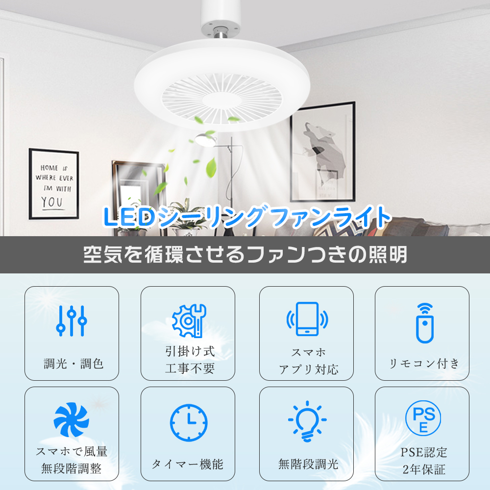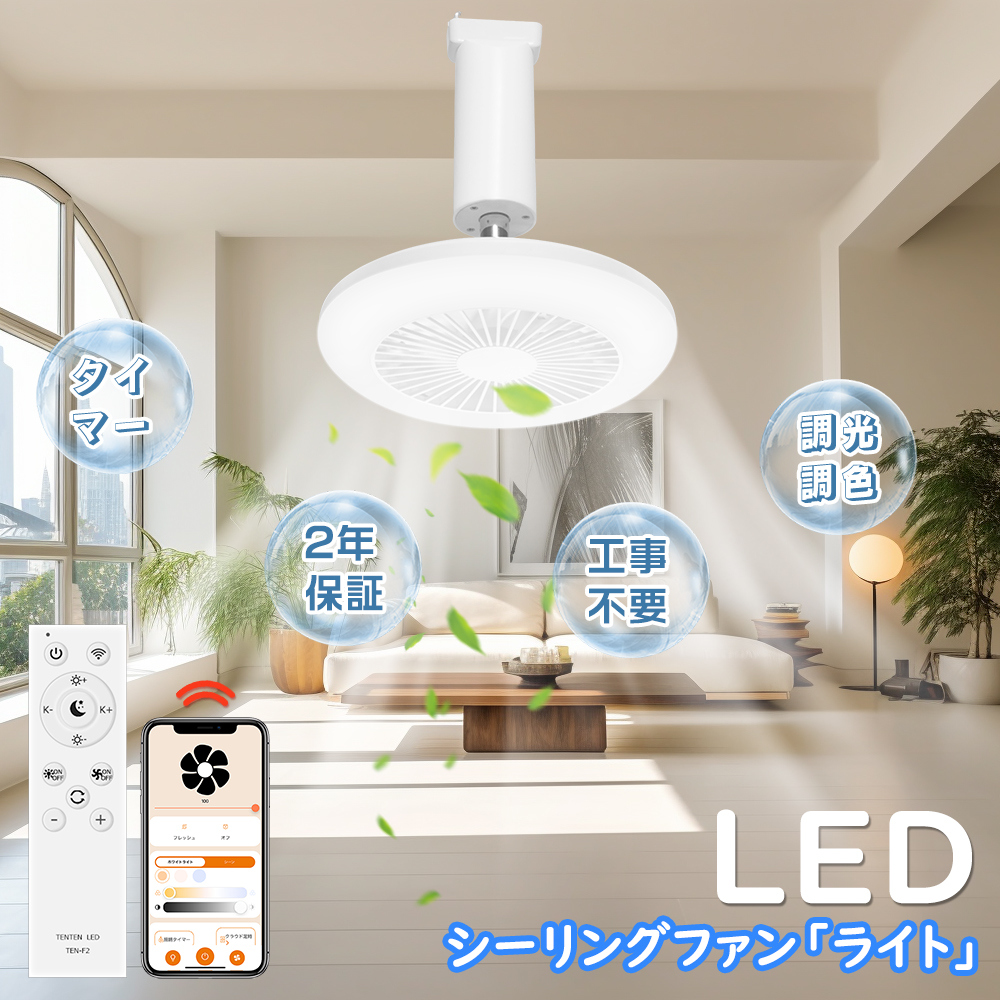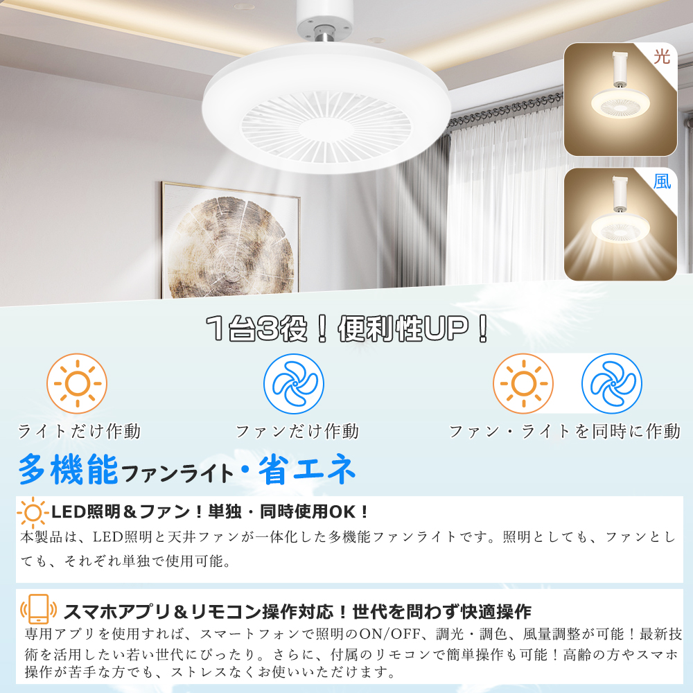 | ■【スマホアプリ&リモコン操作対応!】 | 世代を問わず、快適操作専用アプリを使用すれば、スマートフォンで照明のON/OFF、調光・調色、風量調整が可能!最新技術を活用したい若い世代にぴったり。 さらに、付属のリモコンで簡単操作も可能!高齢の方やスマホ操作が苦手な方でも、ストレスなくお使いいただけます。非常時は停電対策にもなります。屋外、キャンプなどで活躍してくれます。 |
