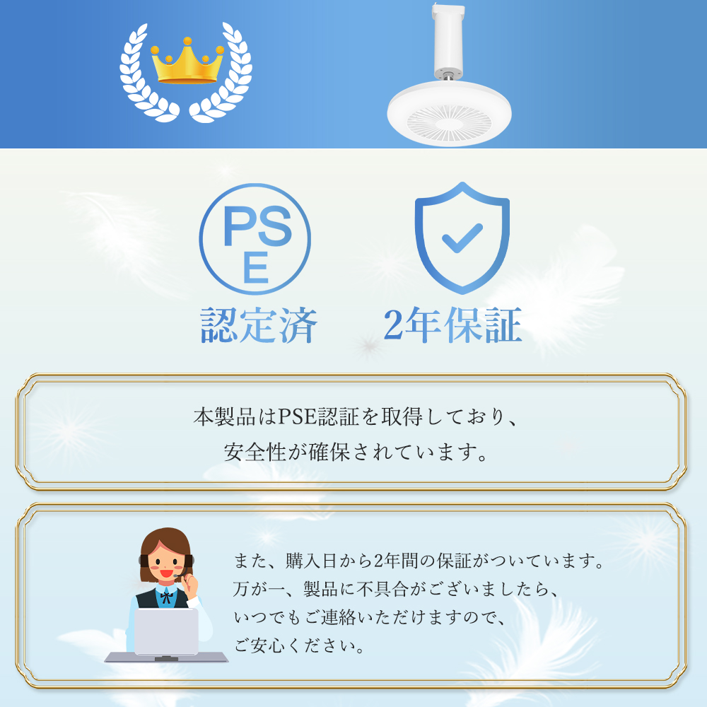 | ■【注意事項】 | ※本製品には自動首振り機能はございませんので、角度の調整は手動で行っていただく形となります。 リモコンでファンの操作ができない場合は、再度ペアリングをお試しください。 |