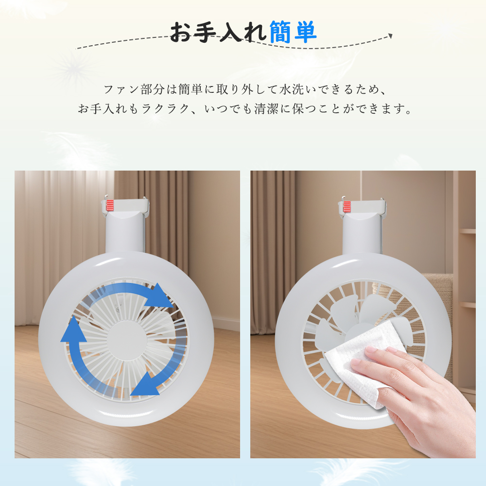 | ■【DC静音モーター採用・静音性UP】 | DC静音モーターで、静かで快適な風。従来のACモーターよりも静かで、低消費電力ながら、しっかりと風を送ります。夜間やリラックス時にも邪魔にならず、快適な空間を作り出します。 |