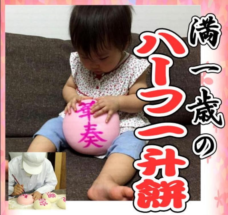 満一歳の誕生日を祝うための伝統行事に「一升餅」というものがあります。これは一升と一生をなぞらえて「一生食べ物に困らないように」「一生健康に育つように」などといった願いを込めて、そして、一歳まで無事に成長したことを祝い、さらにこれからも健康に成長することを祈りお子様のお名前をお餅に書いた伝統行事です。お祝いの方法は、一升の丸餅を風呂敷で包み背負わせるというものです。