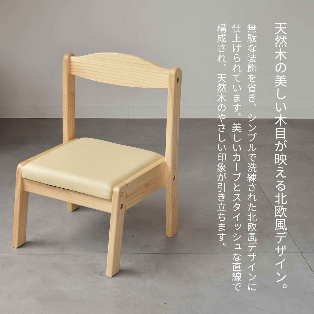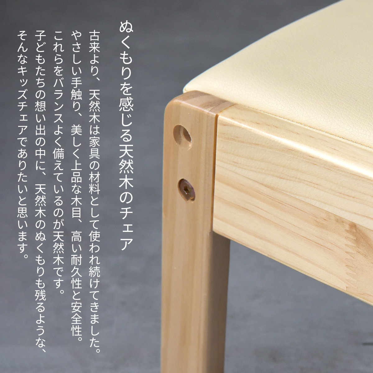 座面高さ2段階で、成長に合わせて使える木製キッズチェア。