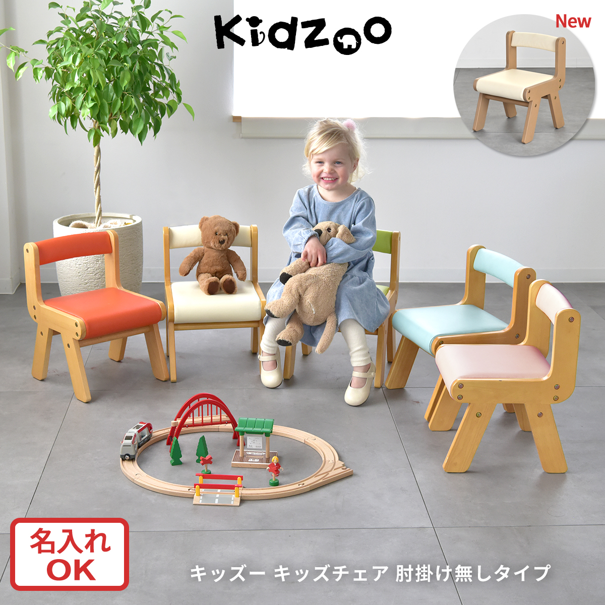 検索語:KDC-3000 KDC-1906 Kidzoo キッズー PVCチェア ローチェア 子供椅子 木製チェア 幼児チェア 名入れプレート