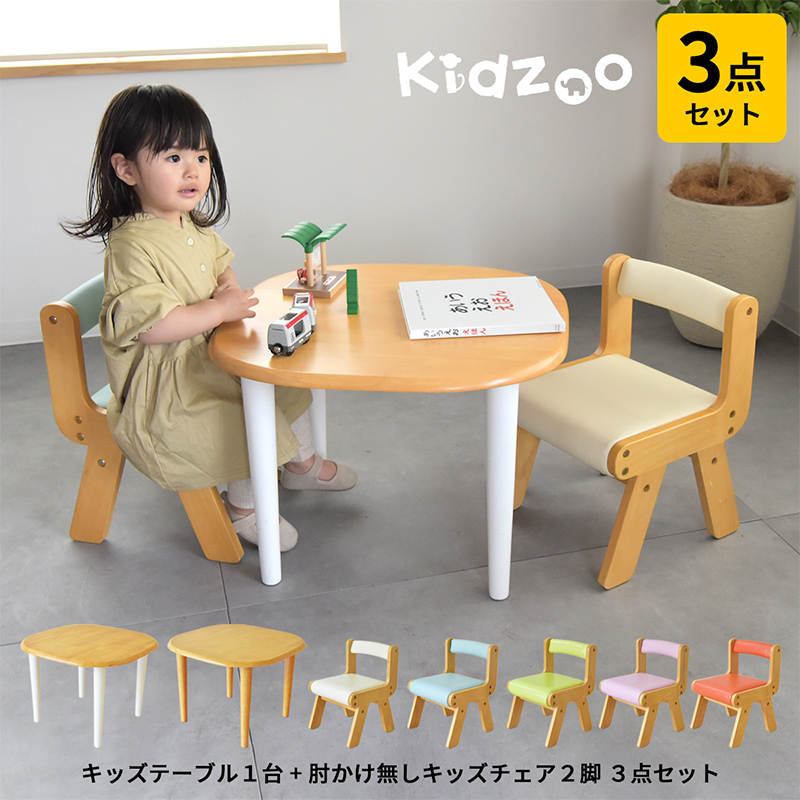 Kidzoo(キッズーシリーズ)キッズテーブル&肘なしチェア 計3点セット KDT-3005 + KDC-3000×2 テーブルセット 子供テーブルセット 机椅子 木製