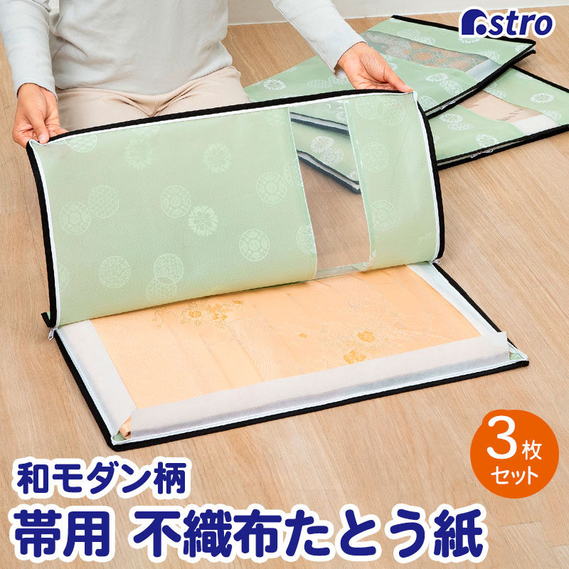 帯収納袋 和モダン柄 3方開き 3枚組 窓あり 着物収納ケース 通気性の良い不織布 着物収納袋 ファスナー式 保管袋 たとう紙の代わり 透明窓付き アストロ 173-30