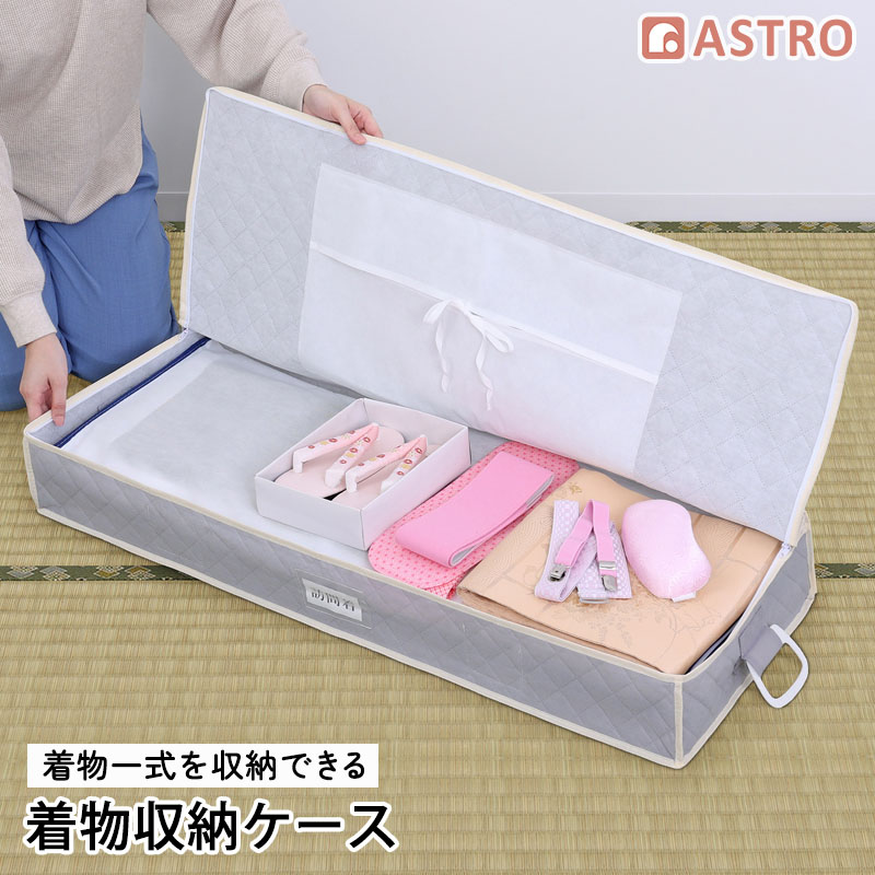 アストロ公式 着物 収納ケース 着物収納袋 収納ボックス ホコリよけ まとめて収納 厚手生地 たとう紙 浴衣 保管 小物収納ポケット 和服 和装 振袖 成人式 179-05