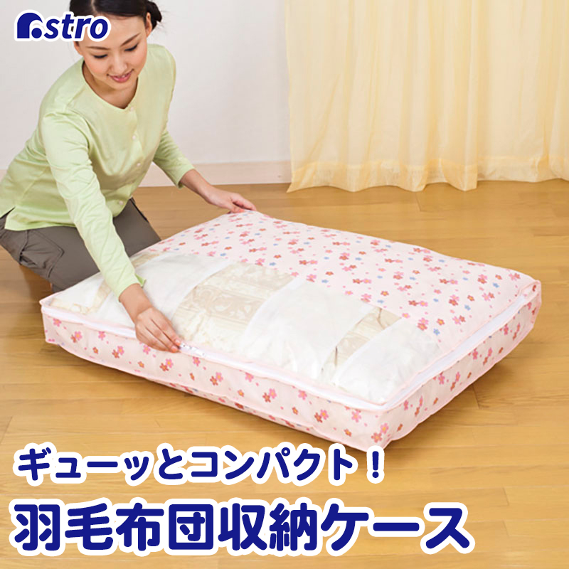 羽毛布団収納ケース 不織布製 シングル 収納袋 ふとん圧縮袋 コンパクト かわいい 花柄 衣替え ほこり除け ピンクフラワー アストロ 197-05