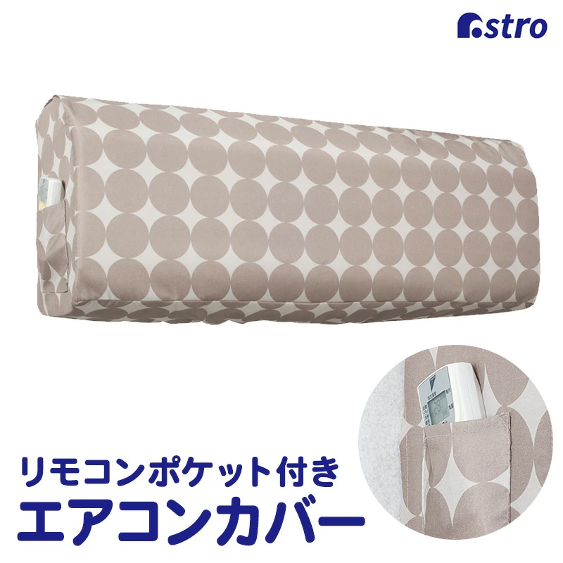 エアコンカバー 室内機用 洗える リモコン用ポケット付き サークル柄 ポリエステル アストロ 199-12