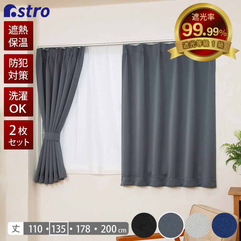 1級遮光カーテン 幅100×丈135cm 2枚組 グレー 1級遮光 洗える 厚手 ドレープカーテン 断熱 防寒 遮熱 節電 エコ 省エネ アストロ 332-31