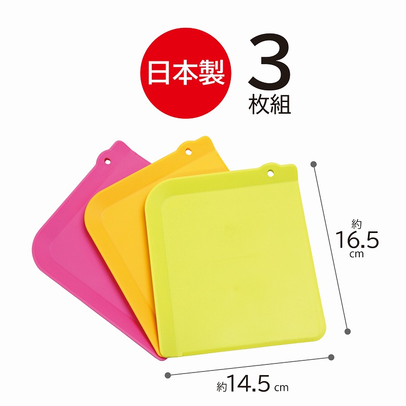 ●抗菌剤を練り込んだ清潔なミニサイズのまな板シート3枚セット。日本製。