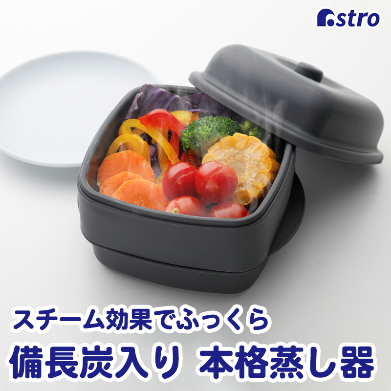 ●備長炭配合のザルがスチーム効果を生み出しふっくら仕上がる。