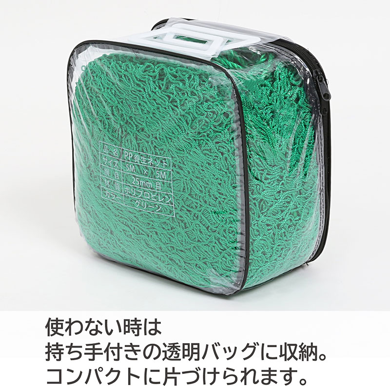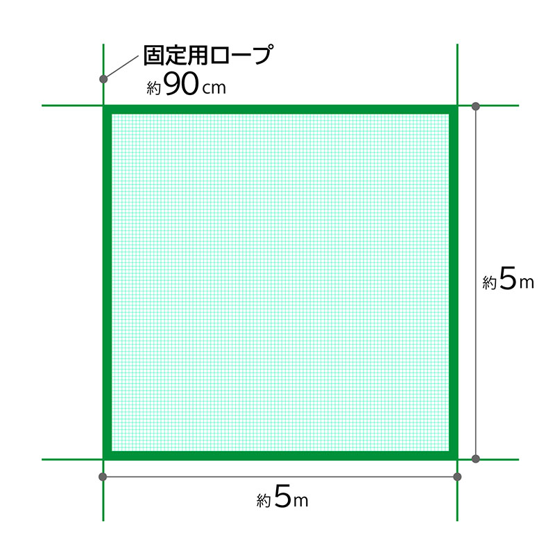 サイズ:約幅5m×奥行5m、網目約2.5×2.5cm、紐約90cm、