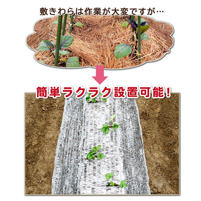 ●キラキラ光る銀色のシートを害虫が嫌がる。忌避効果あり。