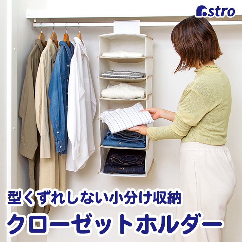 アストロ公式 製品保証付き 吊り下げ収納 衣類収納 クローゼット 押入れ収納 衣替え シャツ収納ホルダー 麻生地 ナチュラル 600-11