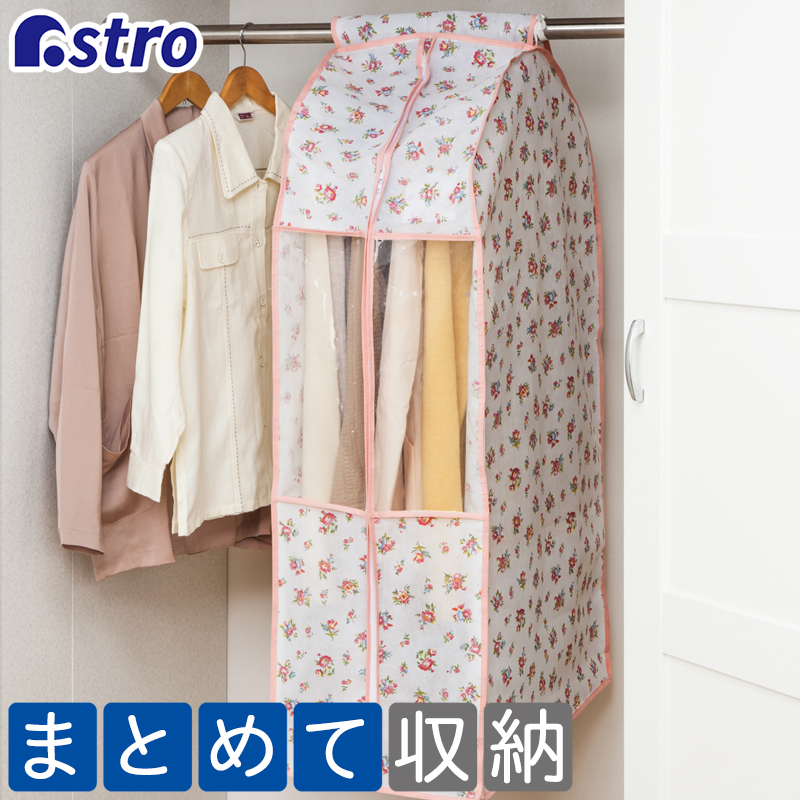 衣類カバー スーツサイズ 不織布 まとめて収納 スーツカバー 花柄 かわいい 衣替え クローゼット収納 透明窓 防虫ポケット 底まで プチローズ 600-12