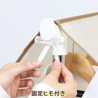 ●両サイドのヒモをハンガーラックのパイプに結ぶことでカバーのズレを防止。