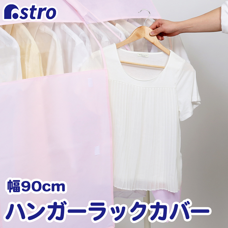 ハンガーラックカバー 幅90cm 不織布 ピンク ズレ防止ヒモ付き 衣類カバー 洋服カバー 衣装カバー ジャケット コート アウター アストロ 613-25