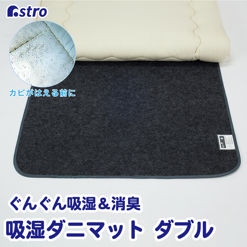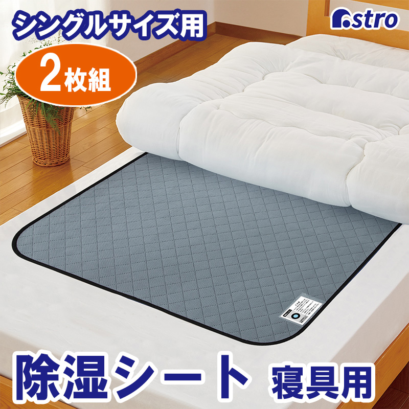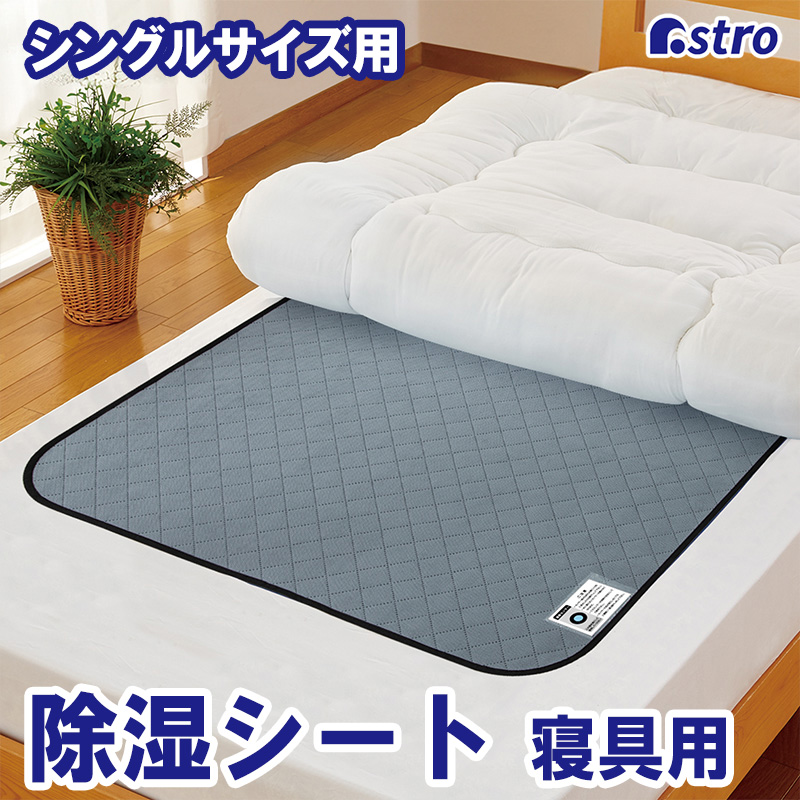 アストロ 除湿シート シングルサイズ用 グレー 活性炭&珪藻土 寝具用 吸湿マット 活性炭で消臭 珪藻土で吸湿 防ダニ 防カビ 結露防止 湿度センサー付き 615-44