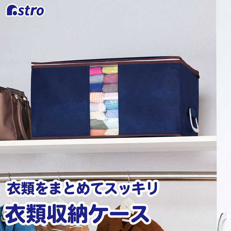 衣類収納ケース ネイビー 通気性の良い不織布 洋服 収納袋 保管袋 収納ボックス 持ち手付きで運びやすい 衣替え 埃除け 衣装ケース 透明窓付き アストロ 618-43