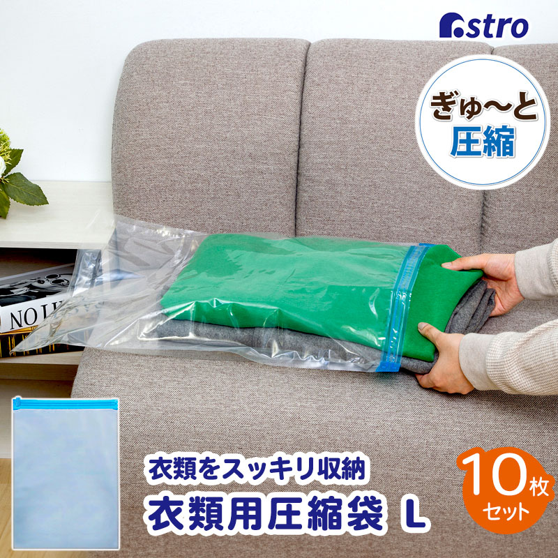 圧縮袋 10枚組 衣類用 Lサイズ 両面透明 手巻きタイプ 丈夫な厚手フィルム 旅行 トラベル 小物保管 アストロ 623-16