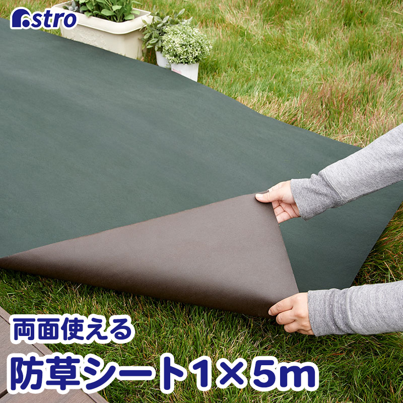 アストロ公式 製品保証付き 防草シート 1×5m リバーシブル グリーン×ブラウン 不織布 厚手 高透水 UV耐候剤配合 高耐久 農用シート 除草シート 624-01