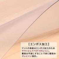 ●マットの表面にはエンボス加工を施しており、サラッとしてベタつきにくい。裏面は平面にすることで床に馴染みズレにくい設計。