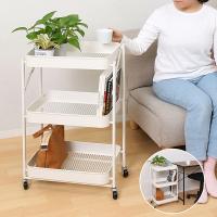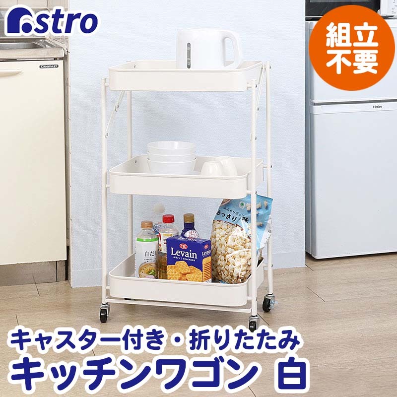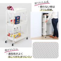 ●組み立て不要で使いたいときに広げてすぐに使える折りたたみワゴン。