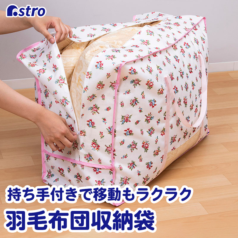 羽毛布団 収納バッグ 洗えるポリエステル製 シングル プチローズ 収納袋 収納バッグ スリム収納 コンパクト アストロ 820-06