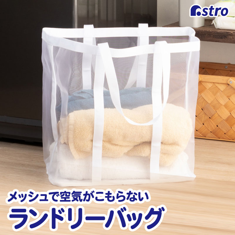 アストロ公式 製品保証付き ランドリーバッグ ホワイト メッシュ素材 洗濯カゴ 洗濯物入れ 大容量 シンプル 白 アストロ 820-29