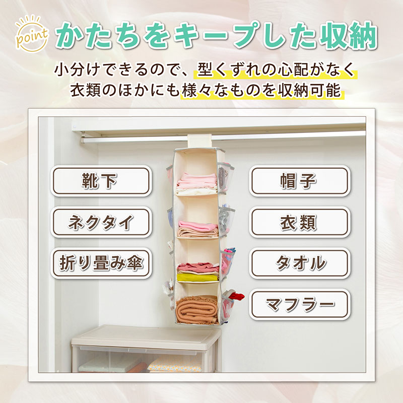 吊り下げ収納 4段 ポケット12個 ベージュ クローゼット 衣類ラック 下着収納 スリム 吊り下げ式 アストロ 821-27
