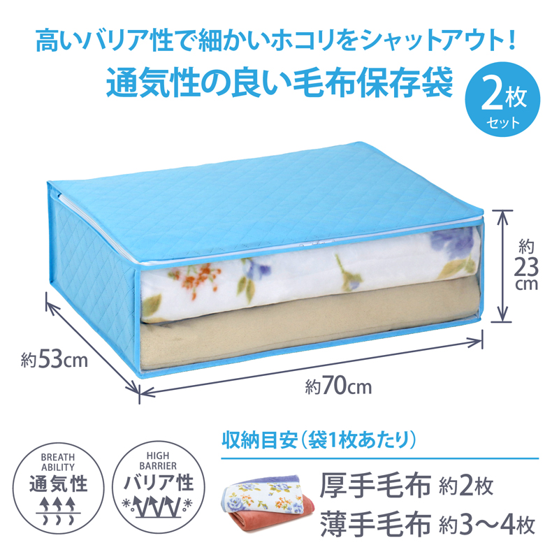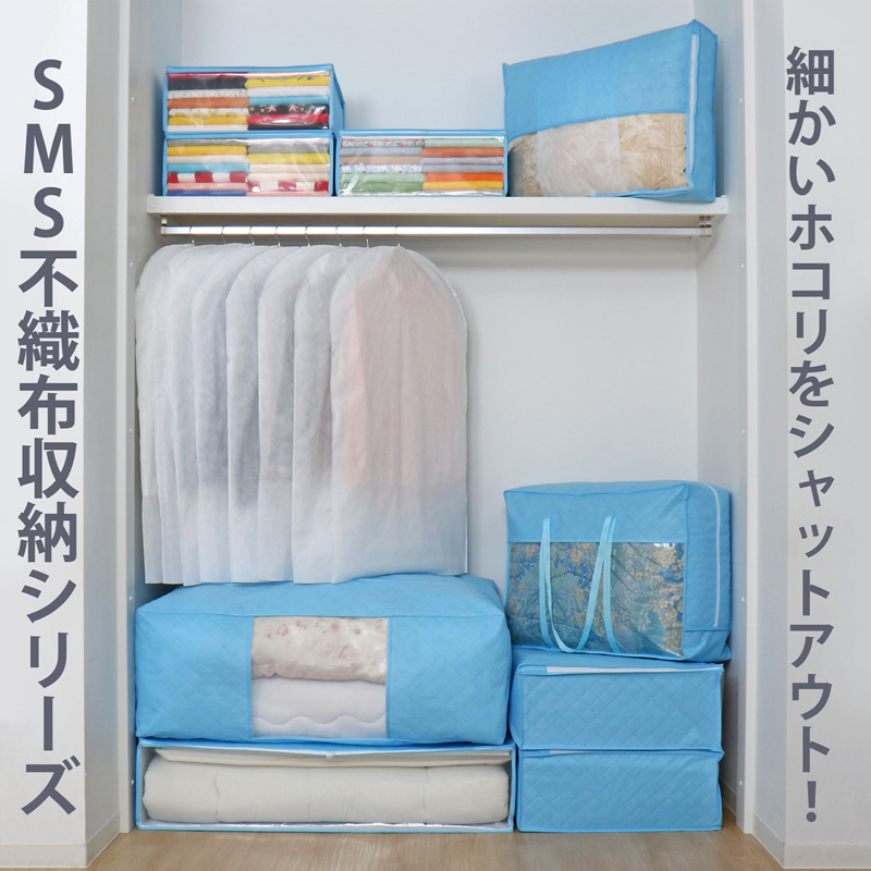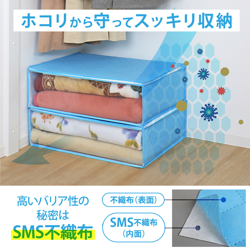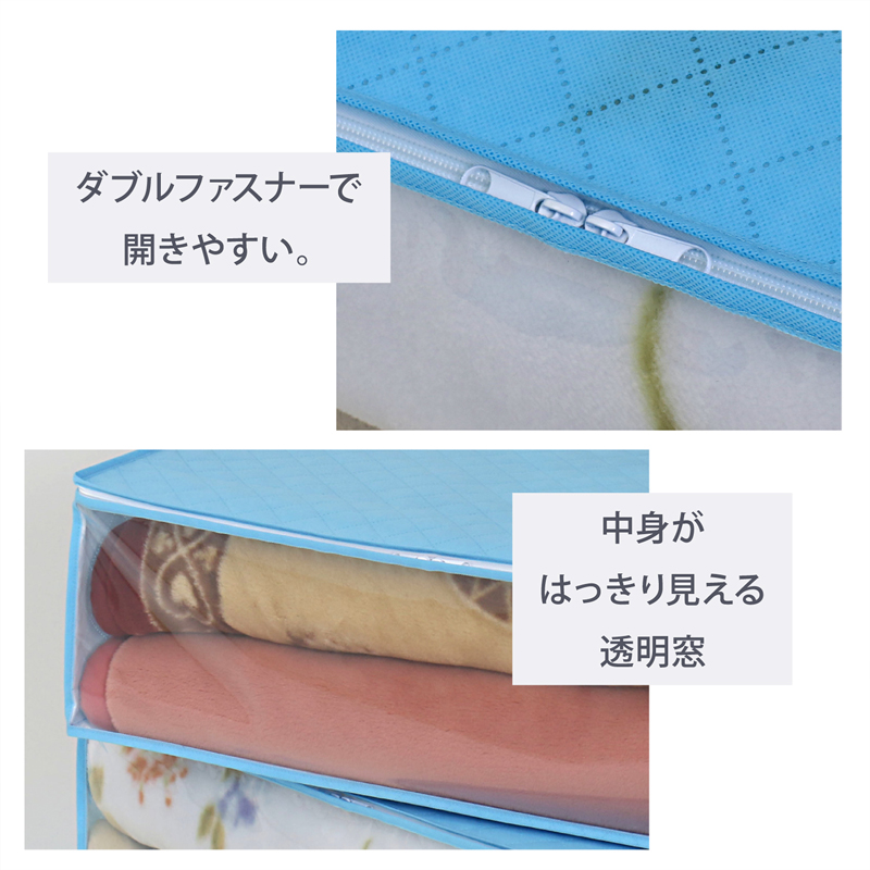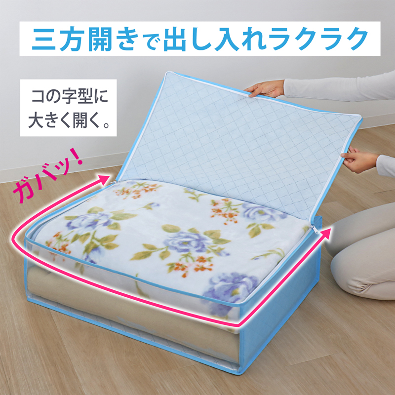 ●オフシーズンの毛布やタオルケットなどをホコリから守り保管。使わないときは折りたためてコンパクトになる。