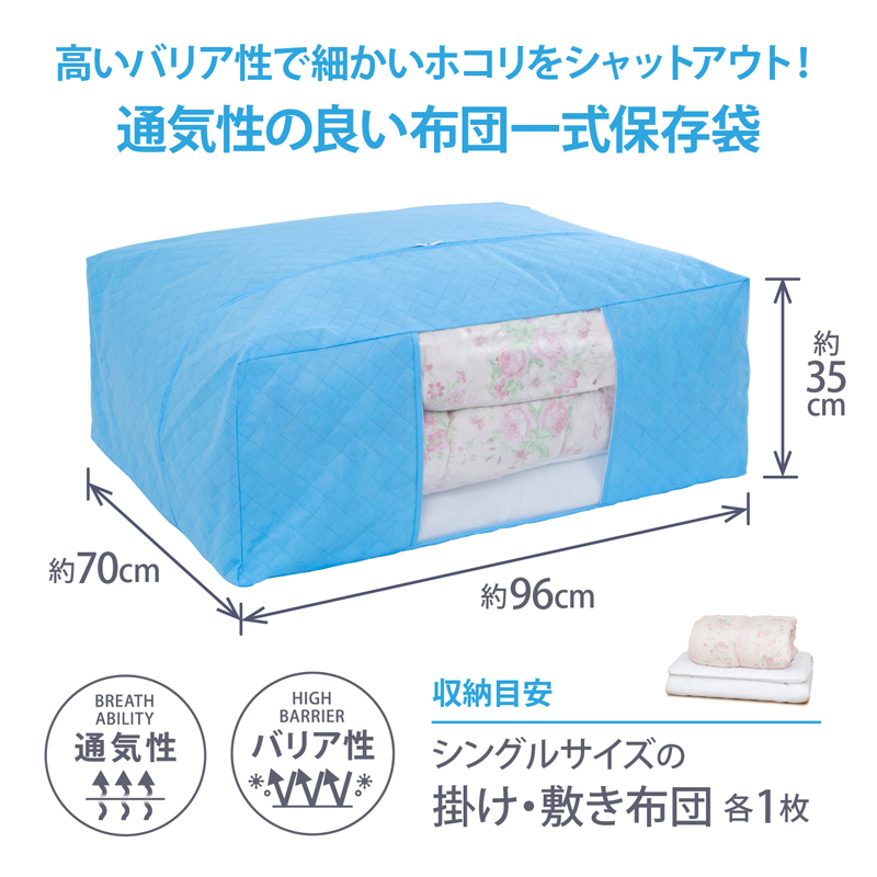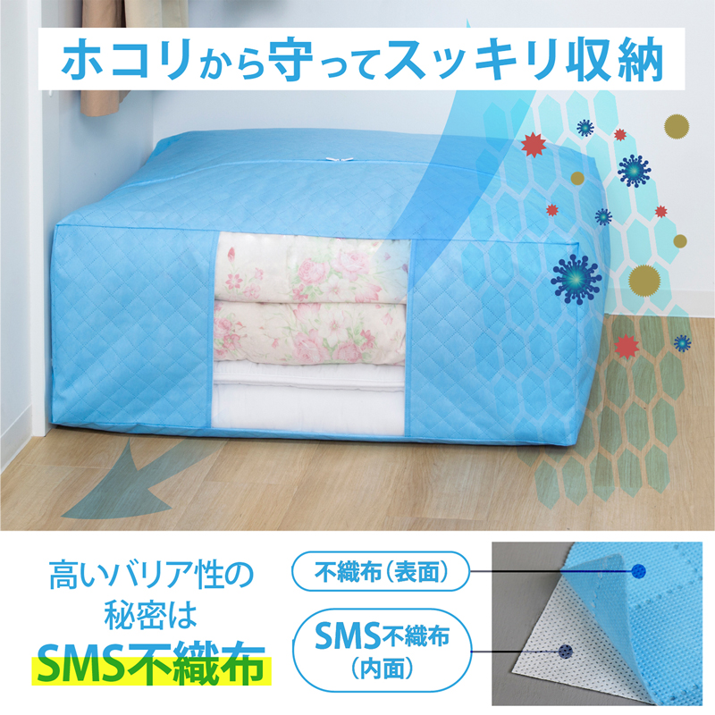 ●来客用などの布団セットをホコリから守り保管。使わないときは折りたためてコンパクトになる。