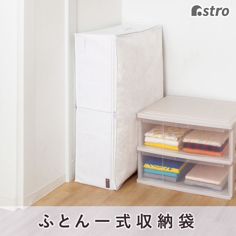 布団一式収納袋 ホワイト 通気性の良い不織布 収納ケース 掛け・敷き布団 収納ボックス 保管袋 シンプル 厚紙入り ネームホルダー付き アストロ mayuyam 860-05