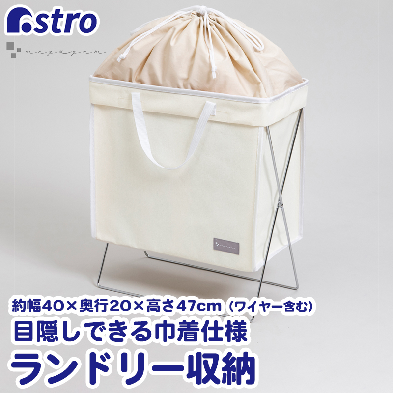 ランドリー収納 巾着 持ち手付き ホワイト シンプル 洗濯カゴ 防塵 撥水 白 おしゃれ 一人暮らし 新生活 mayuyam アストロ 860-25