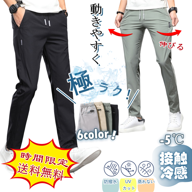 【二枚目半額】爆売 夏用ゴルフウェア チノパン メンズ ストレート チノパンツ ストレッチ ゴルフ メンズパンツ 無地 細身 父の日 接触冷感 男性用30代40代