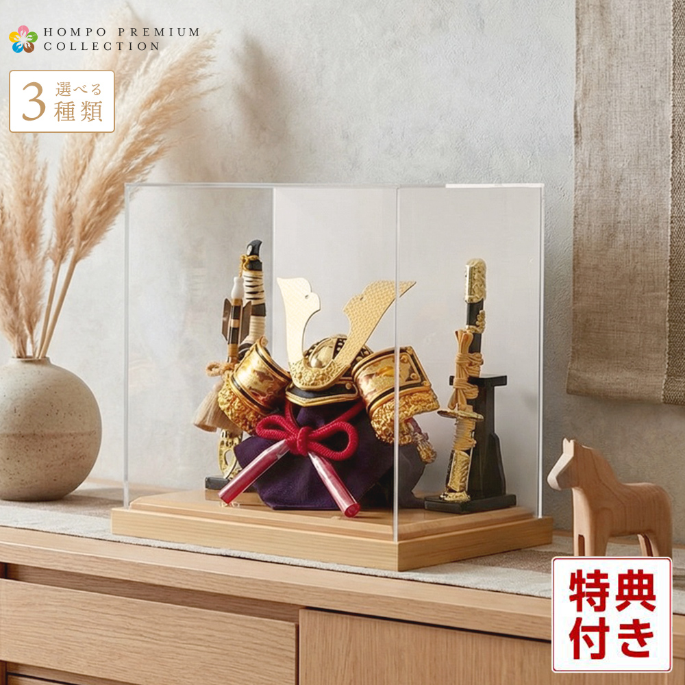 五月人形 兜 コンパクト おしゃれ ケース飾り 兜飾り 4面アクリルケース 弓太刀付 端午の節句 h075-aaa-y5-1