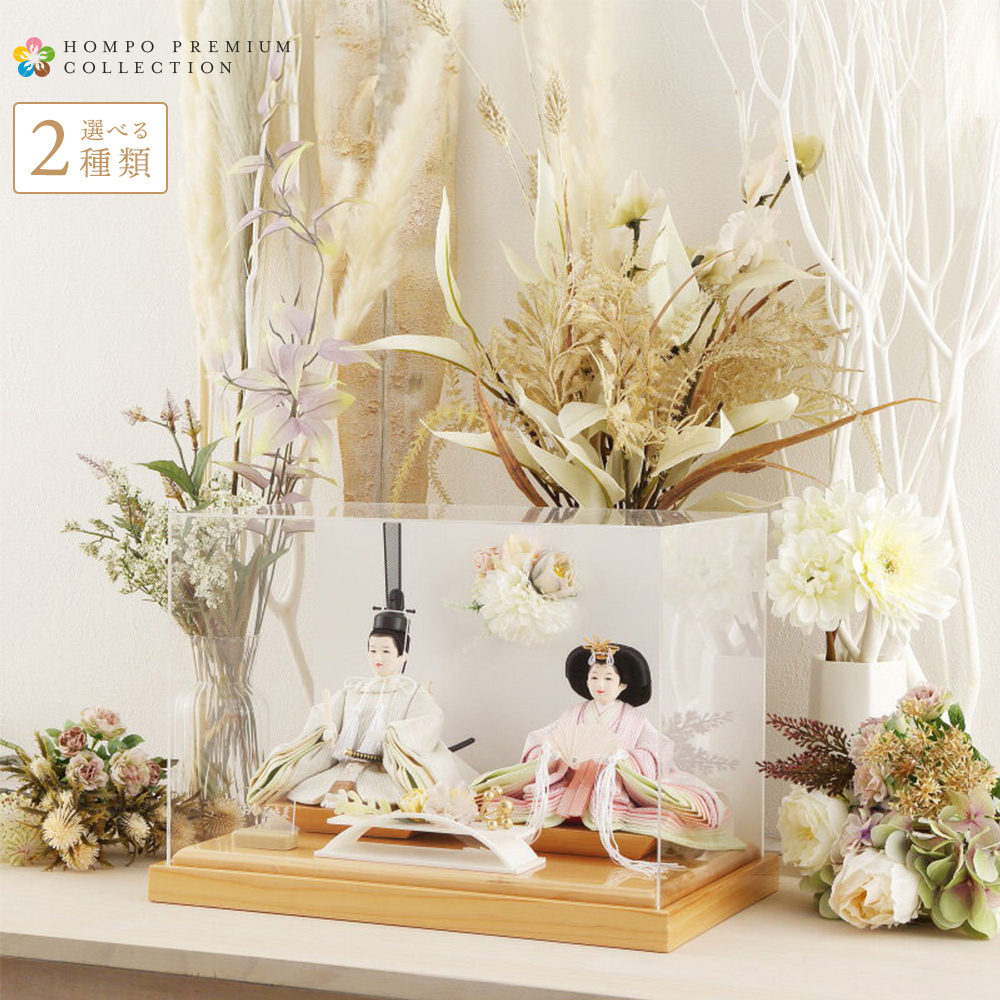 【2026年度 最新モデル】雛人形 コンパクト ひな人形 ケース飾り 親王飾り アクリルフラワーケース HOMPO PREMIUM h083-aaa-y3-1
