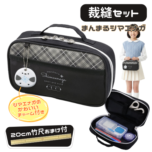 裁縫セット ソーイングセット 小学生 かわいい 女の子 女子 まんまるシマエナガ シンプル おしゃれ 竹尺20cm おまけ付 基本裁縫道具一式 裁縫箱 バッグ ケース