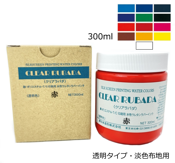 シルクスクリーン インク スクリーン水性ラバーインク Tシャツ 布地印刷 最適 クリアラバダ RUBADA 淡色生地用 透明タイプ 300ml 全13色 色をお選び下さい