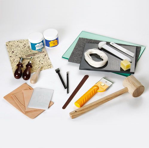 レザーハンドソーイングセット スタンダード 手縫い道具18点 カードパスケース ガイドブック クラフト社 初心者 裁断道具