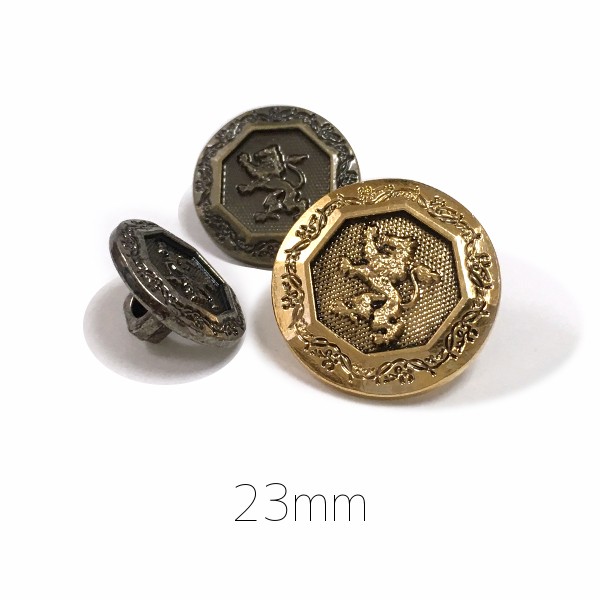 23mm:ヴィンテージ風(墨入り)獅子のエンブレムメタルボタン:TA-61