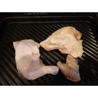 半身丸々だと大変なので、手羽先とレック(モモ)と胴体(ムネとササミ)の3分割にカットしてあります。