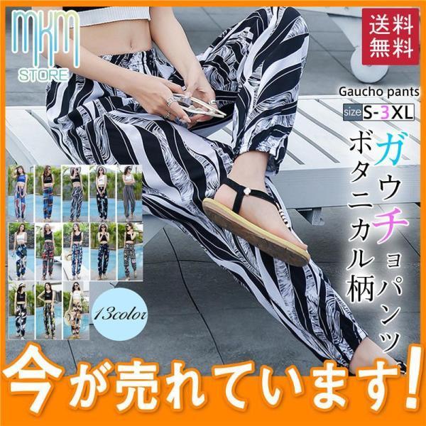 ガウチョパンツ シフォン ボタニカル柄 ハワイアン ロング レディース ワイドパンツ 大きいサイズ 春夏 リゾート ビーチウェア 海 おしゃれ