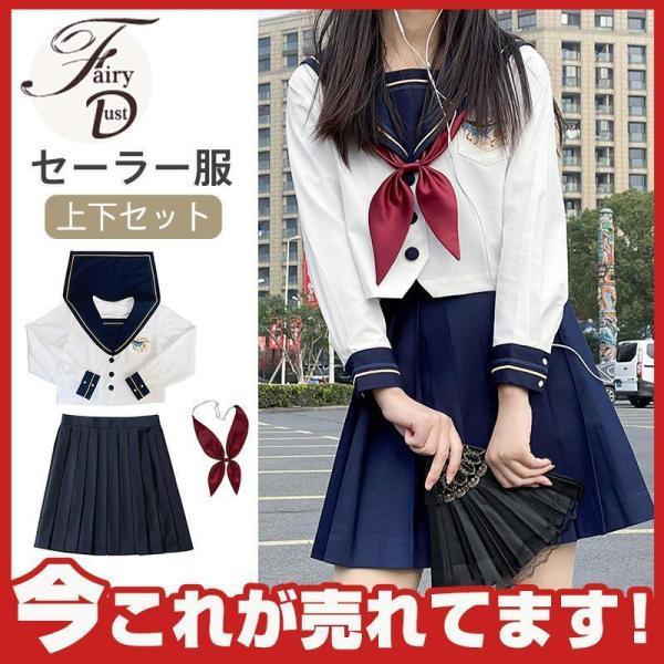 セーラー服 学生制服 JK制服 3点上下セット 長袖 スーツ プリーツスカート 学生服 制服 学園祭 入学式 卒業式 コスプレ cosplay