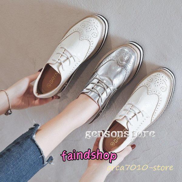 レースアップ おじ靴 オックスフォードシューズ レディース 革靴 レザー 通勤通学 カジュアル 厚底ウェッジソール ウイングチップ スクエアトゥ