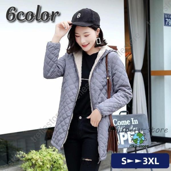 キルティングコート レディース 女性 アウター コート ロングジャケット キルティングジャケット キルト フード付き 中綿入り ジップアップ 内ボア