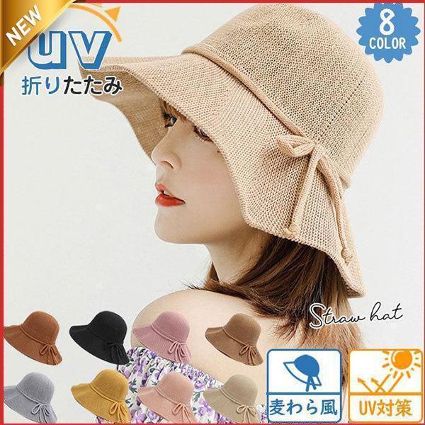 帽子 レディース UVカット UV 折りたたみ リボン麦わら風 大きいサイズ ハット 日よけ 春 夏 アウトドア 紫外線対策 おしゃれ 母の日