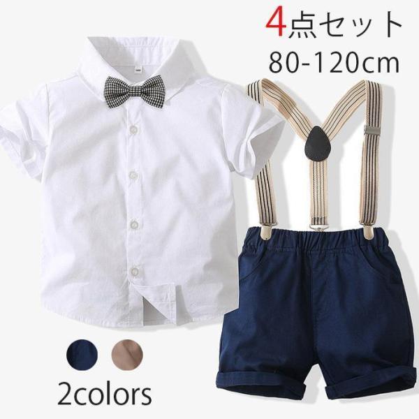 【値下げ】男の子 子供スーツ 夏 入園式 半袖 4点セット フォーマル スーツ 子供 おしゃれ サスペンダー ベビースーツ 七五三 発表会 卒業式 結婚式