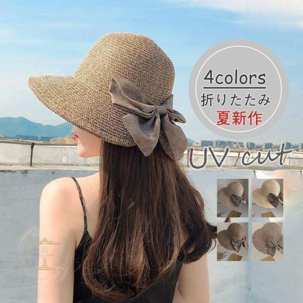 ストローハット 麦わら帽子 紫外線カット 帽子 レディース UVカット帽子 折りたたみ おしゃれ ギフト