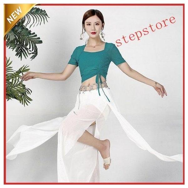 社交ダンス ベリーダンス衣装 上下2点セットアップ ス ロングパンツインナーパン付きバックレスダンス練習着 レッスン着 全店2点