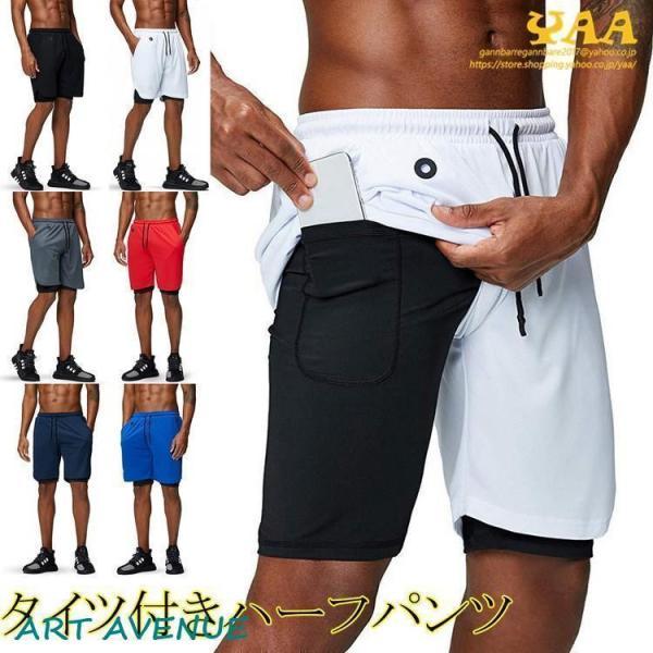 ハーフパンツ ショートパンツ フィットネス トレーニング ランニング スポーツウェア タイツ付き ポケット 吸汗速乾 通気 短パン メンズ